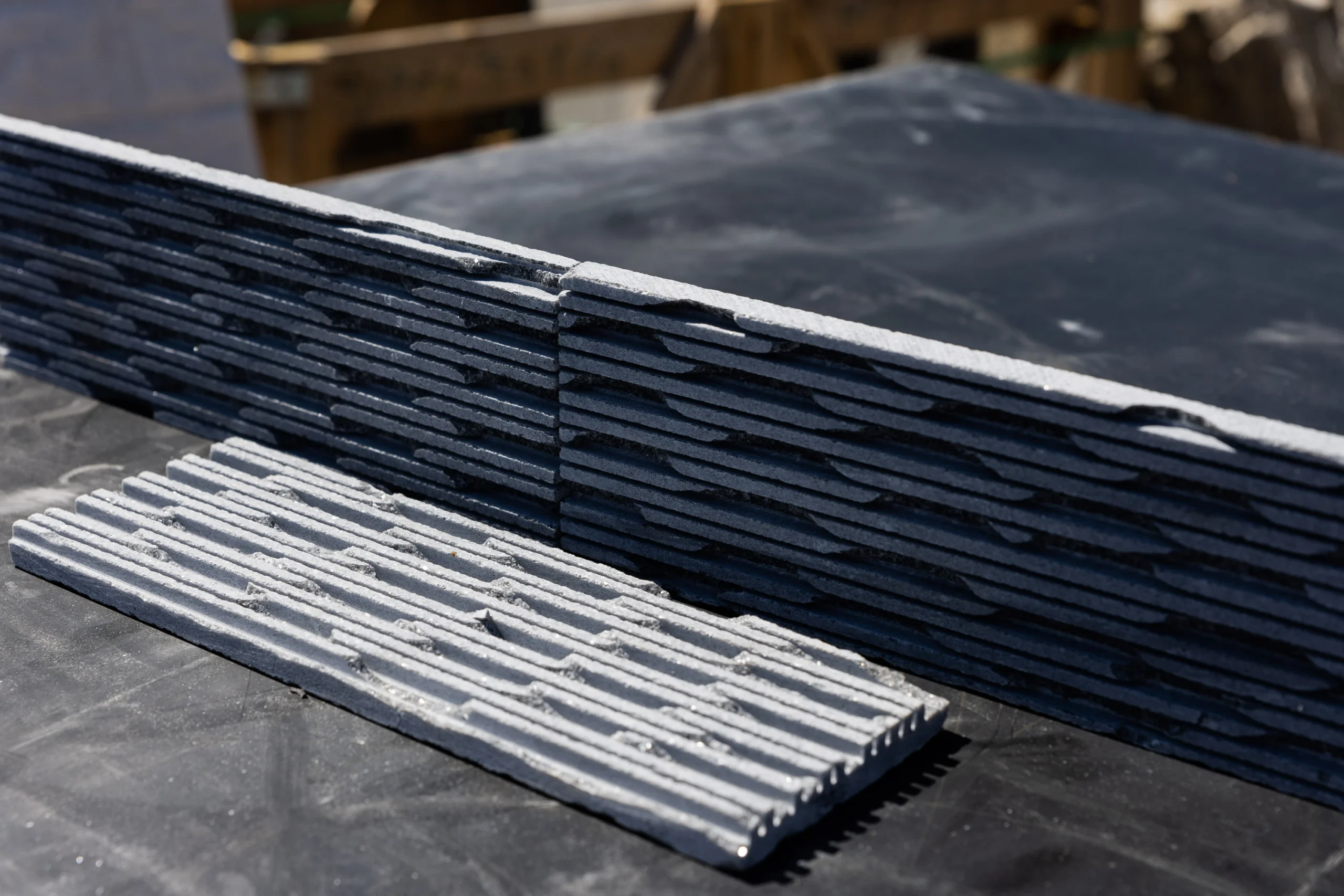 Piatră naturală decorativă, marmură, gri antarcit canelat, 10x30x1.5 cm